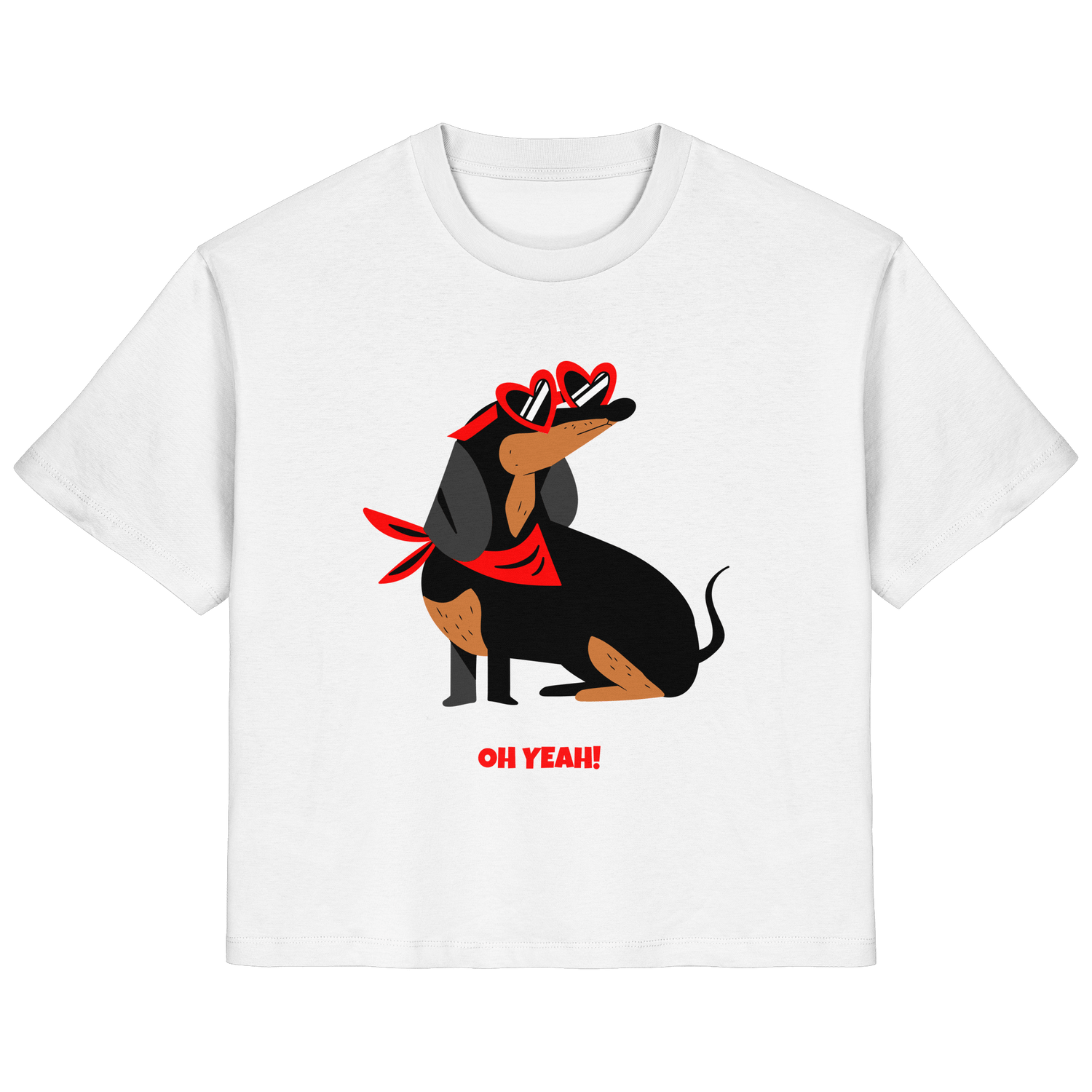 Damen T-Shirt mit trendigem Dackel-Hund mit Sonnenbrille Print. In verschiedenen Farben erhältlich. Hochwertig bedruckt in Deutschland.